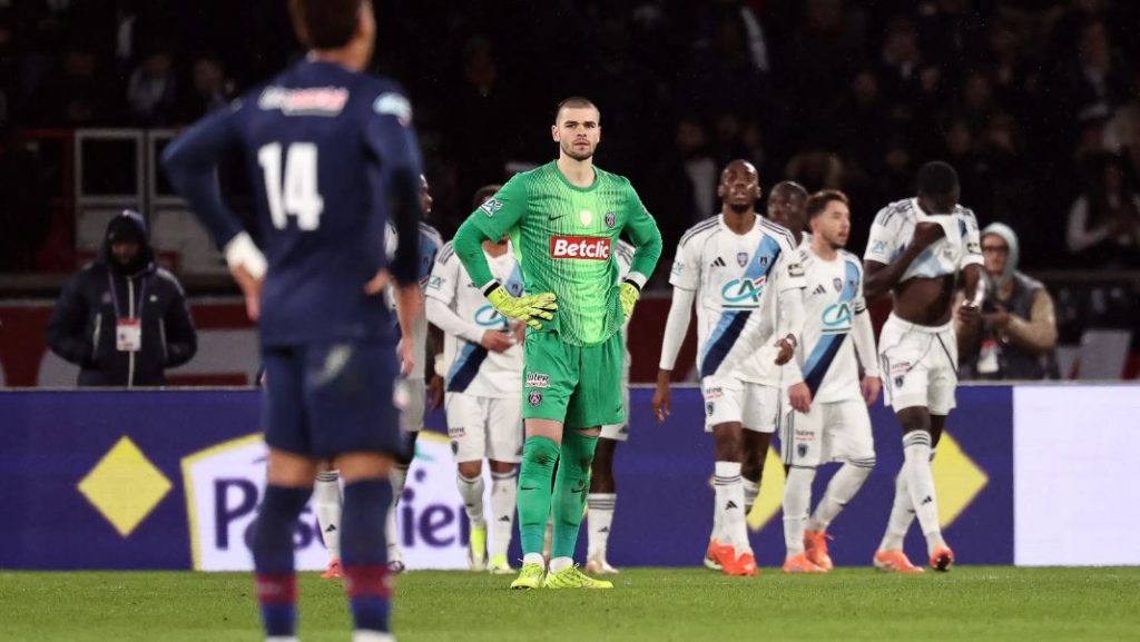 ফ্রেঞ্চ কাপের বর্তমান চ্যাম্পিয়ন পিএসজির বিদায় নিশ্চিত হয়ে গেছে শেষ বত্রিশে। নগর প্রতিদ্বন্দ্বী প্যারিস এফসির বিপক্ষে ঘরের মাঠেই ১-০ গোলের হেরে টুর্নামেন্ট থেকে ছিটকে গেছে তারা। গত মৌসুমে ১৬তম বারের মতো এই টুর্নামেন্টের শিরোপা ঘরে তুলেছিল পিএসজি। তবে এই মৌসুমে শীর্ষ লিগে উন্নীত হওয়া নগরত প্রতিদ্বন্দ্বীর বিপক্ষে হেরে বেজেছে বিদায় ঘণ্টা। জোনাথান ইকোনো ম্যাচের ফলাফল নির্ধারণী একমাত্র গোলটি করেন। পিএসজির অ্যাকাডেমি থেকে ক্যারিয়ার শুরু করা ইকোনো গোল করে হারালেন শৈশবের অ্যাকাডেমির সিনিয়র দলকে। লুইস এনরিকের শীষ্যরা দারুণ প্রচেষ্টা চালালেও প্যারিস এফসির গোলকিপার ওবেদ এনকাবাদিওর একের পর এক দুর্দান্ত সেভে গোলের দেখা পায়নি। বিশেষ করে ইনজুরি টাইমে দূরপাল্লার এক শট দারুণভাবে ঠেকিয়ে ভিতিনিয়ার। ২০১৪ সালের পর প্রথমবার ফ্রেঞ্চ কাপের শেষ-৩২ পর্বে হারলো পিএসজি। ম্যাচ জেতানো গোল করে ইকোনে বলেন, ‘আমরা সত্যিই খুব খুশি। আমরা দারুণভাবে রক্ষণ করেছি। নিজের গোলটি করতে পেরে আমি ভীষণ আনন্দিত। এটা নিখাদ আনন্দ, আর আশা করি এটি আমার শেষ গোল নয়।’ এর আগে, চলতি মাসের শুরুতে দুই দল মুখোমুখি হয়েছিল শীর্ষ লিগে, যা ছিল ১৯৯০ সালের পর প্রথম টপ-ফ্লাইট প্যারিস ডার্বি। সেই ম্যাচে ডিজায়ার দুয়ে ও উসমান দেম্বেলের গোলে ২-১ ব্যবধানে জয় পেয়েছিল ইউরোপীয় চ্যাম্পিয়ন পিএসজি।